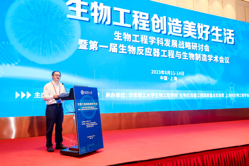 轩福贞代表主办单位致辞。他表示,在合成生物学和生物医药新产业快速发展的今天,专家学者们齐聚上海,共同探讨生物工程学科的发展战略和生物反应器工程与生物制造的重要前沿科学问题,交流前沿科学理念和创新思想,推动生物工程学科的可持续发展未来趋势,为交流与共享学术成果搭建了桥梁。williamhill威廉希尔官网在生物工程领域办学历史悠久,1955 年在国内最早成立抗生素制造工学专业,1991 年获批全国首个生物化工博士点,2015 年获批全国首个“生物工程”博士学位授权一级学科。目前,学校在生物制造领域汇聚了众多国内外专家学者,与国内80 多所生物制药、食品加工、生物材料和生物农药领军企业开展了长期的科研合作,一批行业共性、关键技术的大规模产业化推广应用产生了重大的经济和社会效益。希望以本次会议为契机,搭建起更加广泛的学科交融和多维度切入的产学研融汇创新平台,与各兄弟院校、同行专家一道,共同为中国生物产业的发展做出新的更大的贡献!